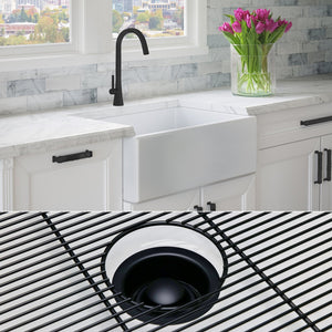 FSW1001MB LUXURY 30-INCH SOLID FIRECLAY FARMHOUSE SINK IN WHITE, MATTE BLACK ACCS, FLAT FRONT