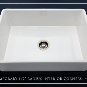 FSW1001PN LUXURY 30-INCH SOLID FIRECLAY FARMHOUSE SINK IN WHITE, POLISHED NICKEL ACCS, FLAT FRONT