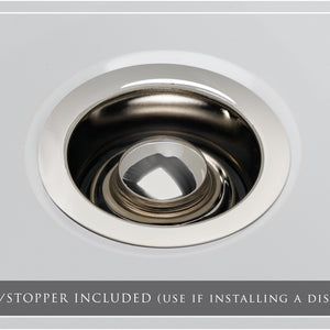 DISPOSAL FLANGE INCLUDED: 3.5” disposal flange and stopper