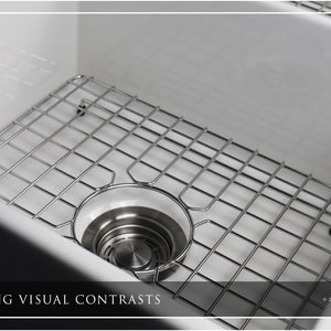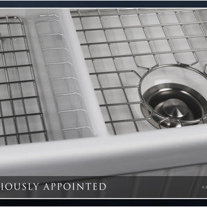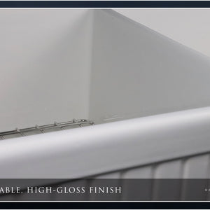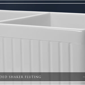 FSW1006 LUXURY 33-INCH SOLID FIRECLAY FARMHOUSE SINK IN WHITE, STAINLESS STEEL ACCS, FLUTED FRONT