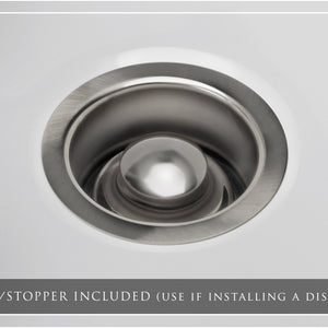 DISPOSAL FLANGE INCLUDED: 3.5” disposal flange and stopper