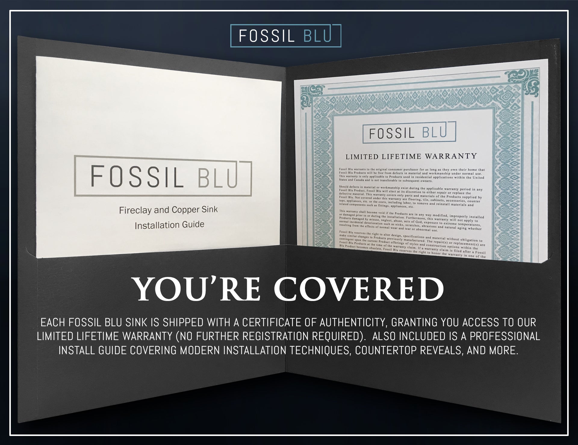 Cheap and inferior "fireclay" sinks are usually just hollow-core ceramic products. When you buy Fossil Blu, you're buying authenticity and long-term durability. Our SOLID dual-layer fine and ultra-fine base material makes for an incredibly resilient sink.