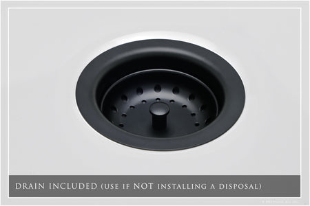 DRAIN INCLUDED: 3.5” basket strainer drain and assembly