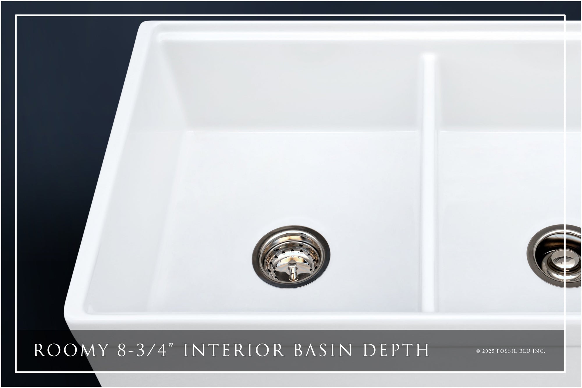 Cheap and inferior "fireclay" sinks are usually just hollow-core ceramic products. When you buy Fossil Blu, you're buying authenticity and long-term durability. Our SOLID dual-layer fine and ultra-fine base material makes for an incredibly resilient sink.