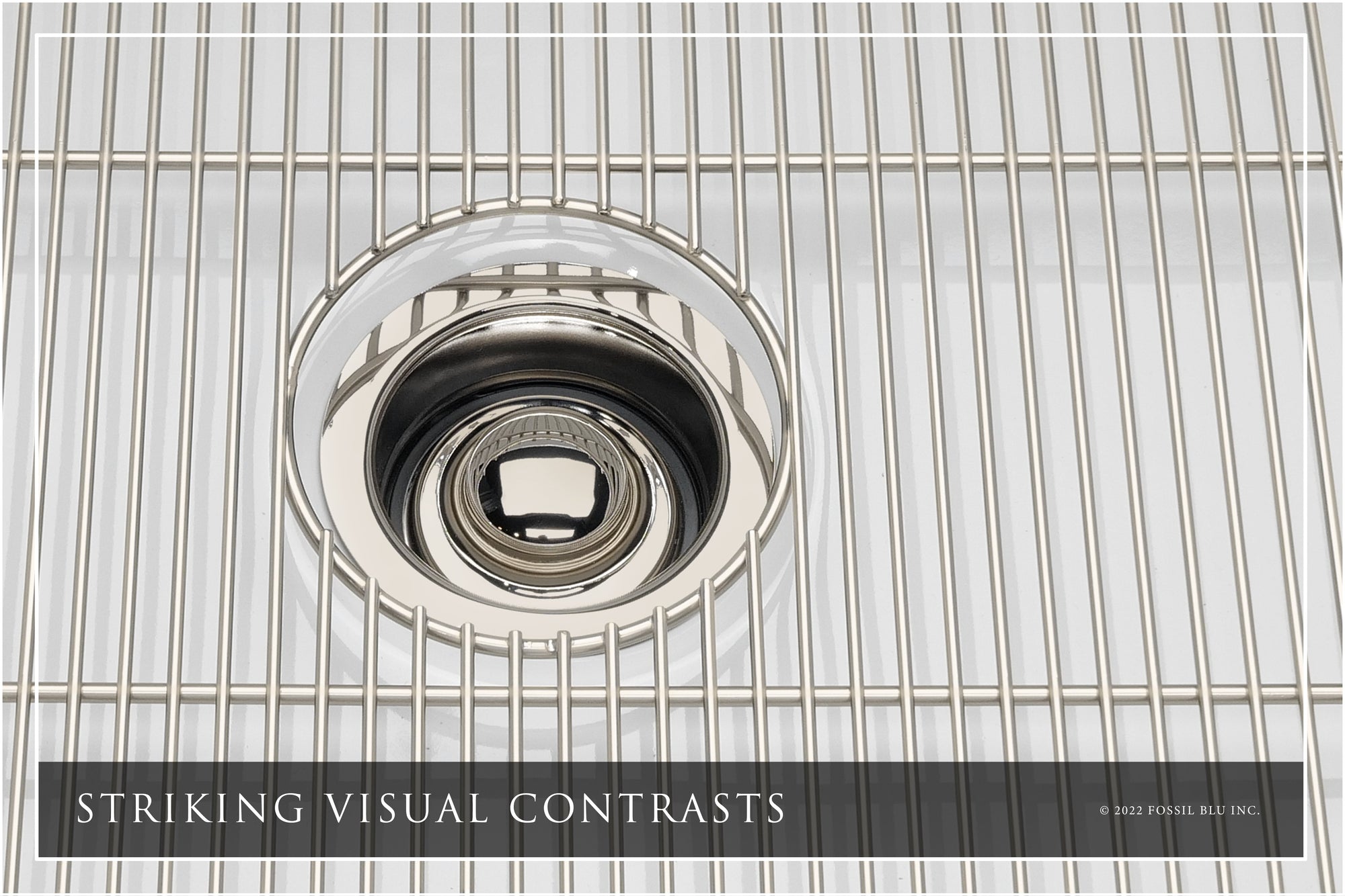 Available in six finishes, only Fossil Blu allows you to match your sink basin accessories to the hardware color motif of your kitchen. Choose from Antique Copper (pairs well with Oil Rubbed Bronze), Matte Black, Matte Gold (similar to Matte Brass or "Champagne Bronze"), Polished Nickel, Polished Rose Gold, or our classic Stainless Steel in a checkerboard pattern.