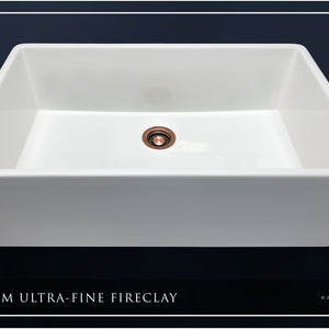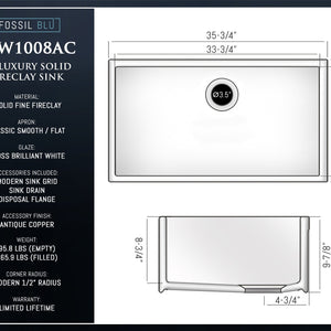 FSW1008AC LUXURY 36-INCH SOLID FIRECLAY FARMHOUSE SINK IN WHITE, ANTIQUE COPPER ACCS, FLAT FRONT