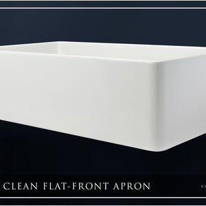 Our most popular choice for the sink apron, Fossil Blu’s flat-front fireclay farmhouse sinks provide a clean and classic look to updated kitchens. With no imprint, the rectangular shape is itself the design... a muted elegance, allowing for other kitchen elements to share the spotlight. Our flat-front fireclay sinks feature soft edges and a supple appearance to the front, characteristic of the natural fireclay material underneath. At 7/8” thickness, it presents as a contemporary sink and is therefore a neutral fit in a variety of kitchen themes. The left and right sides of the sink are fully finished, allowing for any install depth. We generally recommend 1-1/2” to 2” of the sink to be exposed on the left and right sides.