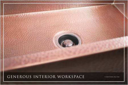 Dish washing isn’t as much of a chore when there is a sense of pride while standing at your sink. As the largest copper sinks we sell, Fossil Blu 33-inch copper undermount sinks are not only gorgeous, but offer one of the largest interior workspaces available for the 33” class of undermount sinks. Whether you like to entertain guests, have a large family, or simply want as a big of a sink as your kitchen plans allow, look no further. With 31” x 16” interior dimensions, this sink boasts nearly 500 square inches of surface area, easily containing even your largest pots and pans. See specification sheet (below) for spec data and dimensional line art.