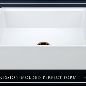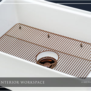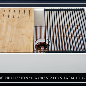 FSW1301RG LUXURY 30-INCH SOLID FIRECLAY WORKSTATION APRON-FRONT SINK IN WHITE, INCLUDES TOP AND POLISHED ROSE GOLD BOTTOM ACCESSORIES, FLAT FRONT