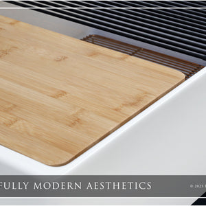 A sink is only as good as it's surface, and we take no shortcuts here. Our proprietary silica-based glaze is the best in the industry; It's easy to clean, very durable, and highly resistant to scuffs/scratches. All Fossil Blu fireclay workstation sinks are offered in Glossy White and Matte Black.