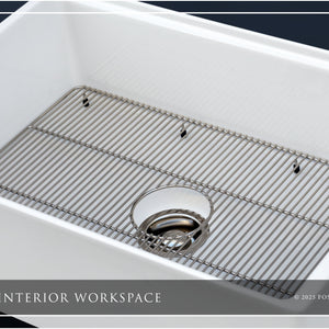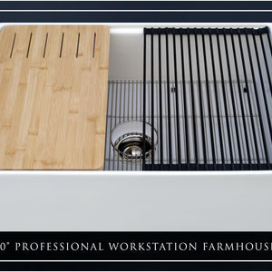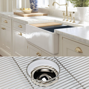 FSW1302PN LUXURY 33-INCH SOLID FIRECLAY WORKSTATION APRON-FRONT SINK IN WHITE, INCLUDES TOP AND POLISHED NICKEL BOTTOM ACCESSORIES, FLAT FRONT
