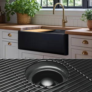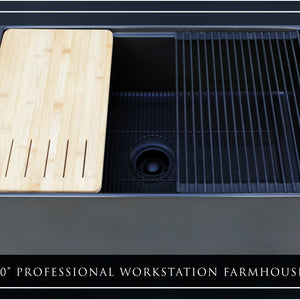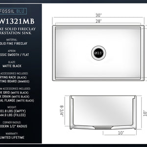 FSW1321MB LUXURY 30-INCH SOLID FIRECLAY WORKSTATION APRON-FRONT SINK IN BLACK, INCLUDES TOP AND MATTE BLACK BOTTOM ACCESSORIES, FLAT FRONT