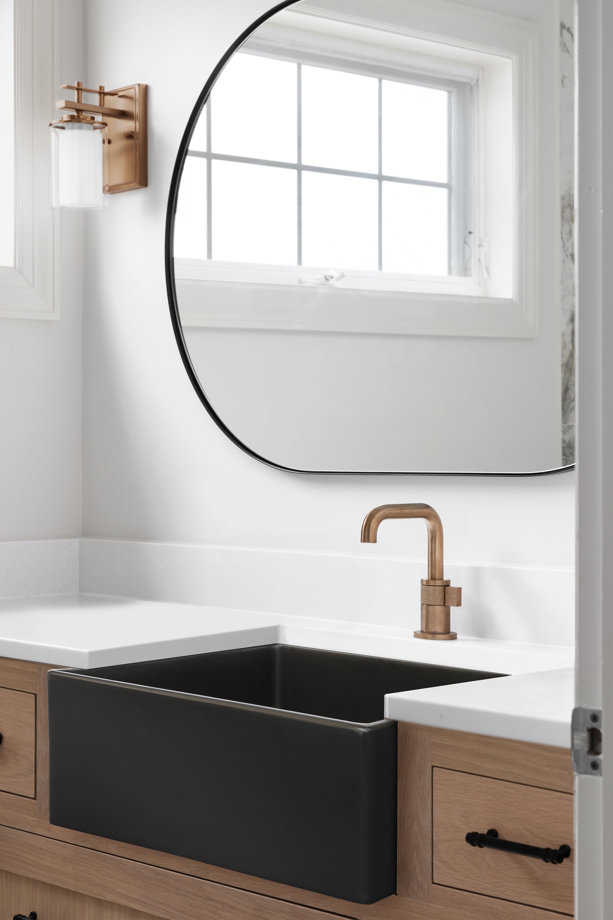 Get the farmhouse look and ease-of-use, now in the bathroom, only with Fossil Blu. As one of the only makers and purveyors of BATHROOM farmhouse sinks, Fossil Blu leads the industry in design and function. With a 1.75" drain hole, this sink is not just a re-purposed bar or kitchen prep sink. It is designed specifically for bathrooms.