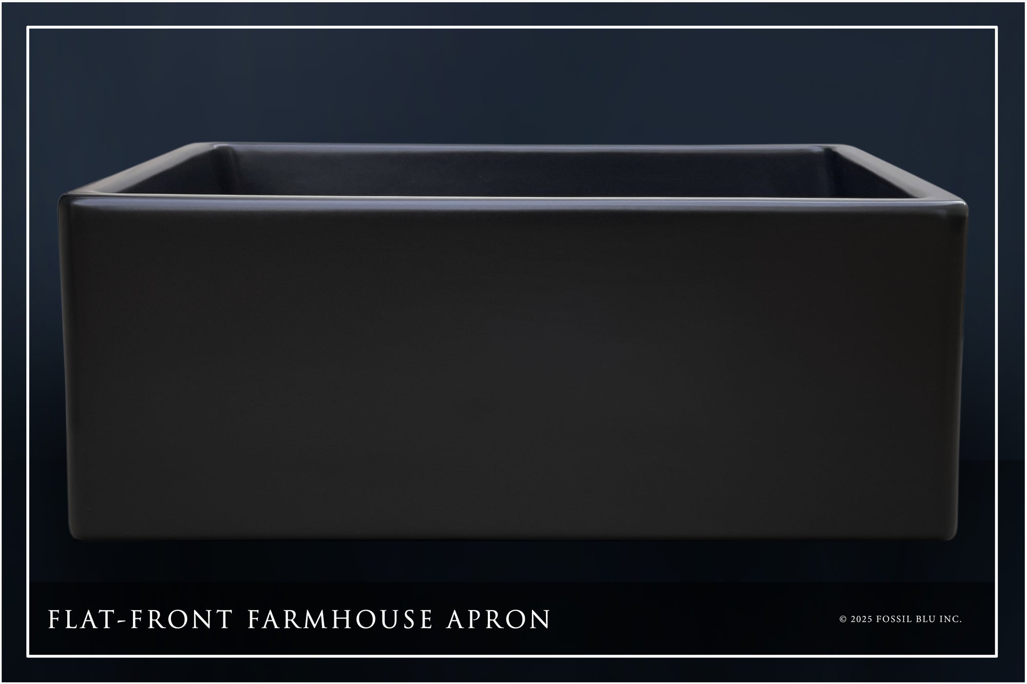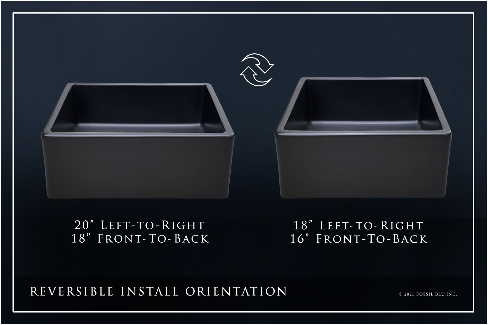 Fossil Blu’s flat-front fireclay bathroom farmhouse sinks provide a clean and classic look to updated bathrooms. With no imprint, the rectangular shape is itself the design... a muted elegance, allowing for other bathroom elements to share the spotlight. Our flat-front fireclay sinks feature soft edges and a supple appearance to the front, characteristic of the natural fireclay material underneath. At 1” thickness, it presents as a contemporary sink and is therefore a neutral fit in a variety of bathroom themes. The left and right sides of the sink are fully finished, allowing for the sink to be reversed, with the 16" side used as the exposed apron, resulting in an 18" wide, 20" front-to-back sink.