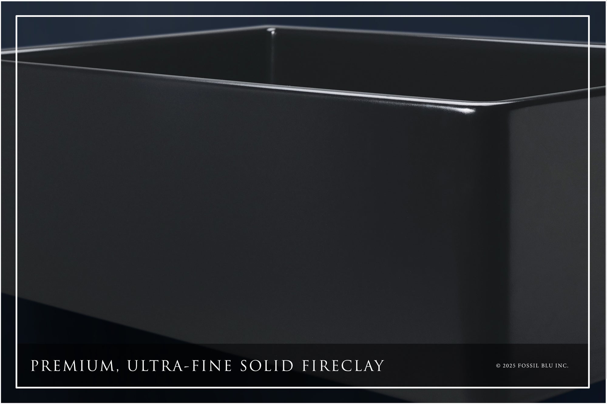 Fossil Blu fireclay farmhouse sinks feature authentic SOLID fine and ultra-fine fireclay. Authentic fireclay is a semi-rare natural white clay containing higher concentrations of fine-grained quartz (silica) than typical ceramic (kaolin) clays. When the silica-based glaze is applied (learn more about our glaze below) and then fired at extremely high temperatures, the silica of both the quartz and glaze fuse together, creating a single structure. This “single structure” is what separates fireclay from typical/inexpensive ceramic products, which are fired at lower temperatures, exhibit little fusing, and are thin and/or hollow structures. This is also why genuine fireclay sinks, such as Fossil Blu, are more expensive than inauthentic “fireclay” sinks found in the marketplace.