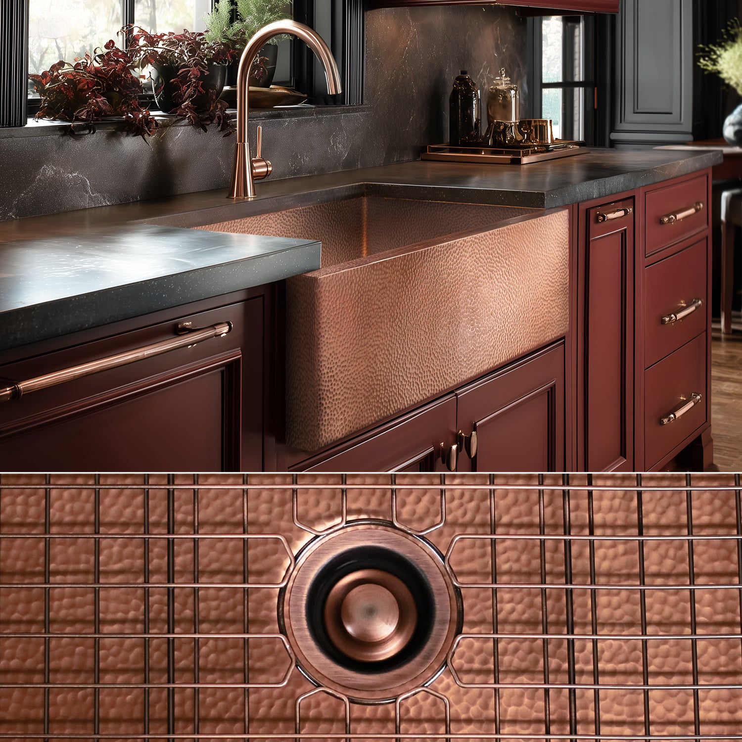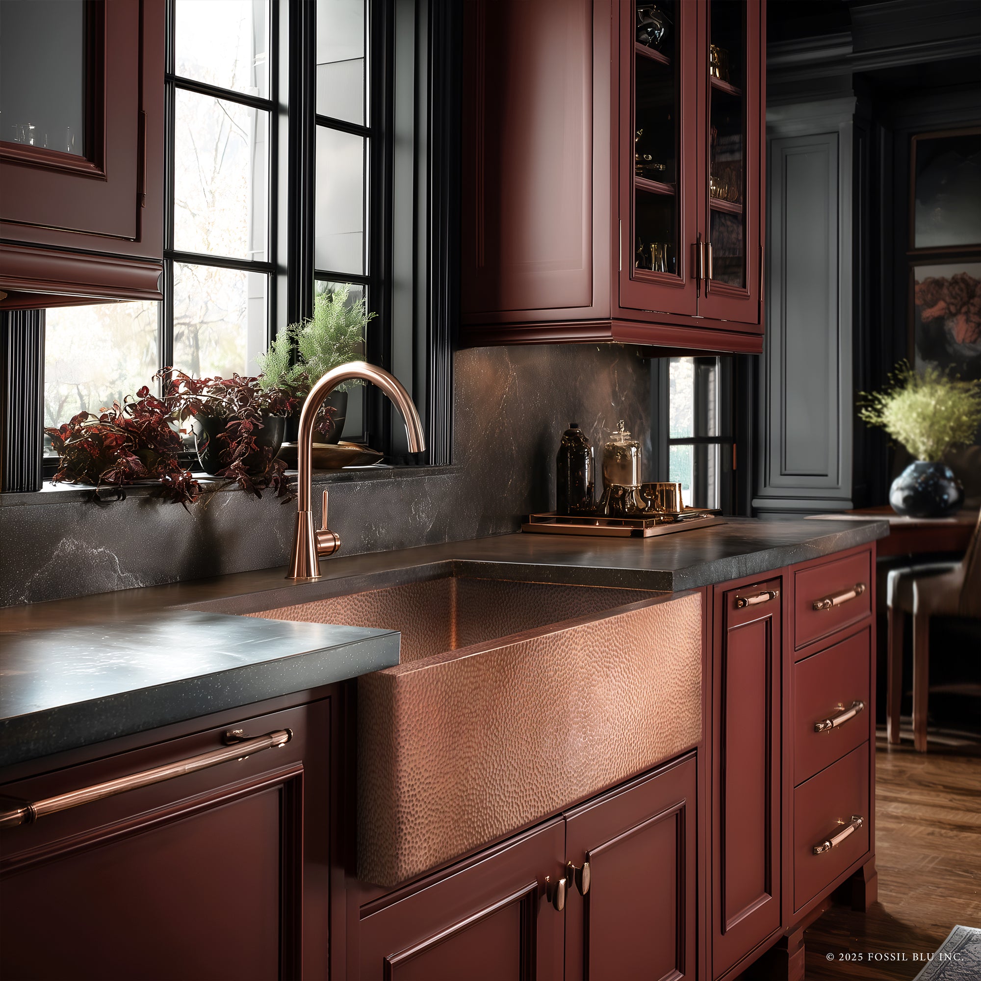 Every Fossil Blu Copper Farmhouse Sink is made with extra-thick, 99.1% pure copper (zinc added for stength)