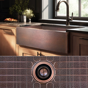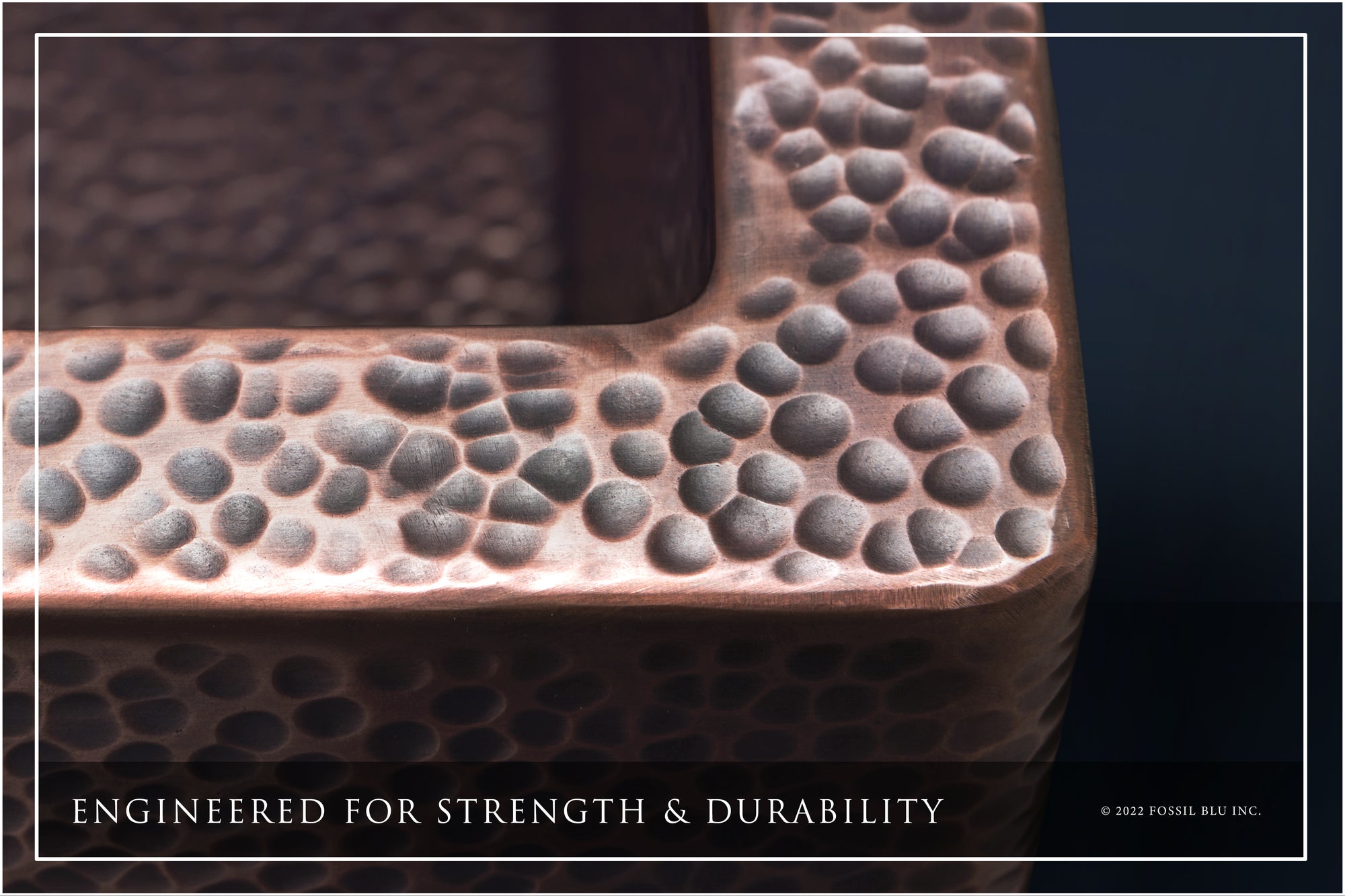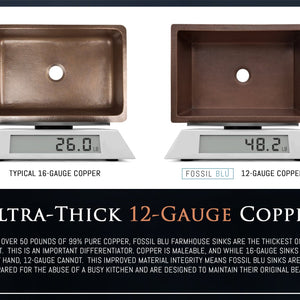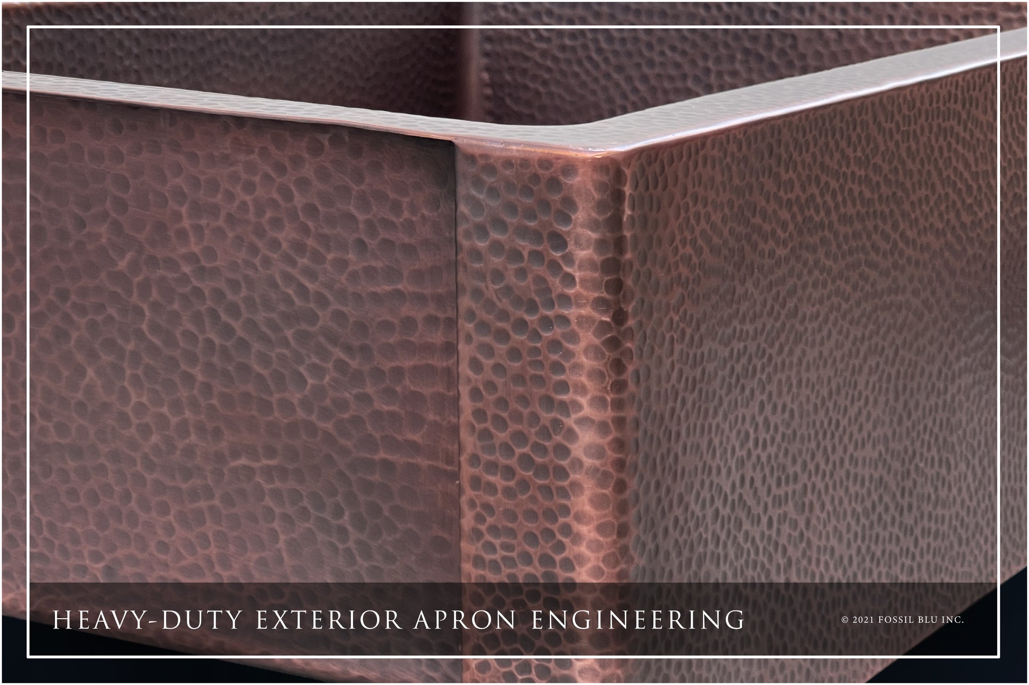 Every Fossil Blu Copper Farmhouse Sink is made with extra-thick, 99.1% pure copper (zinc added for stength)