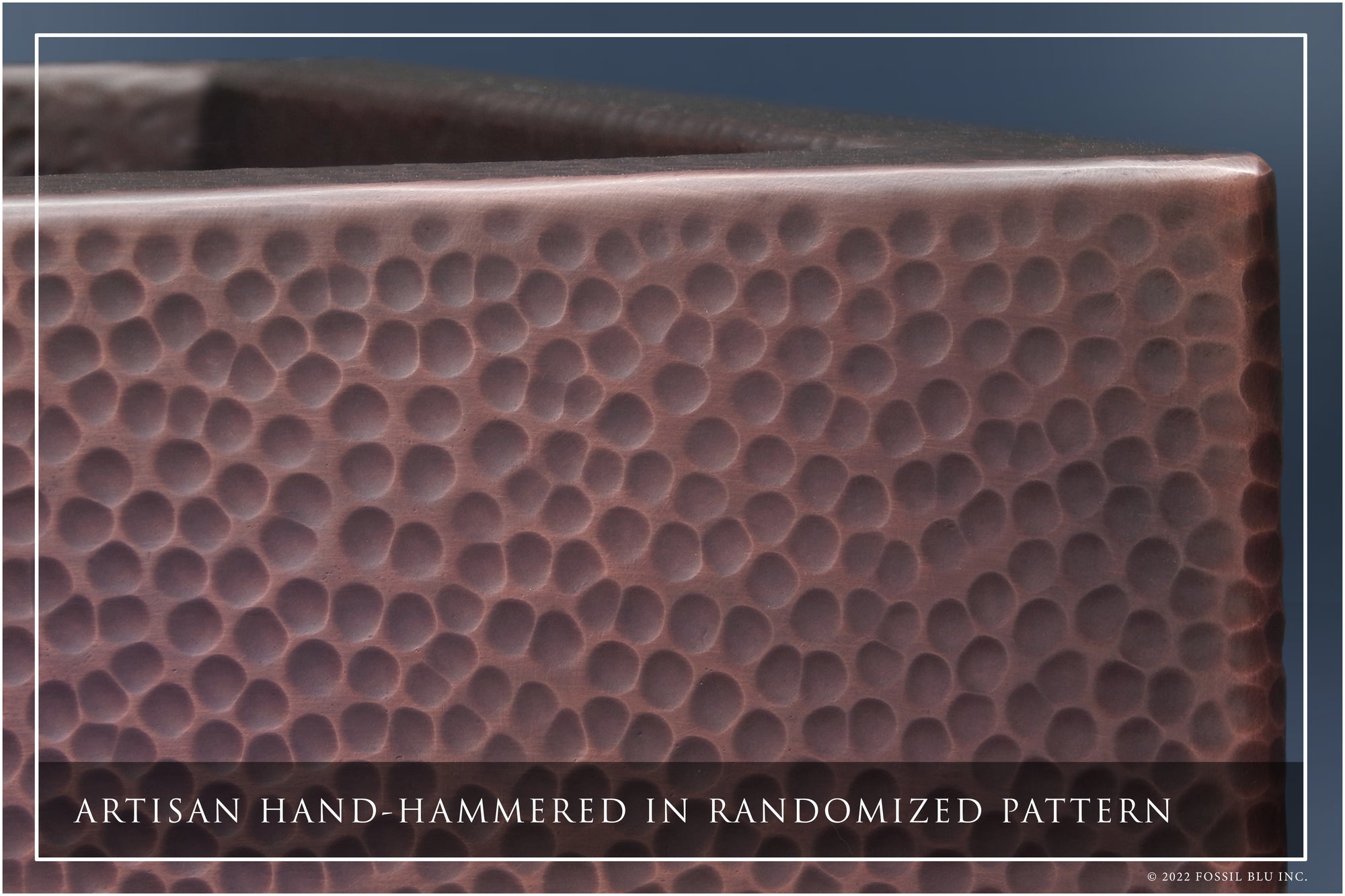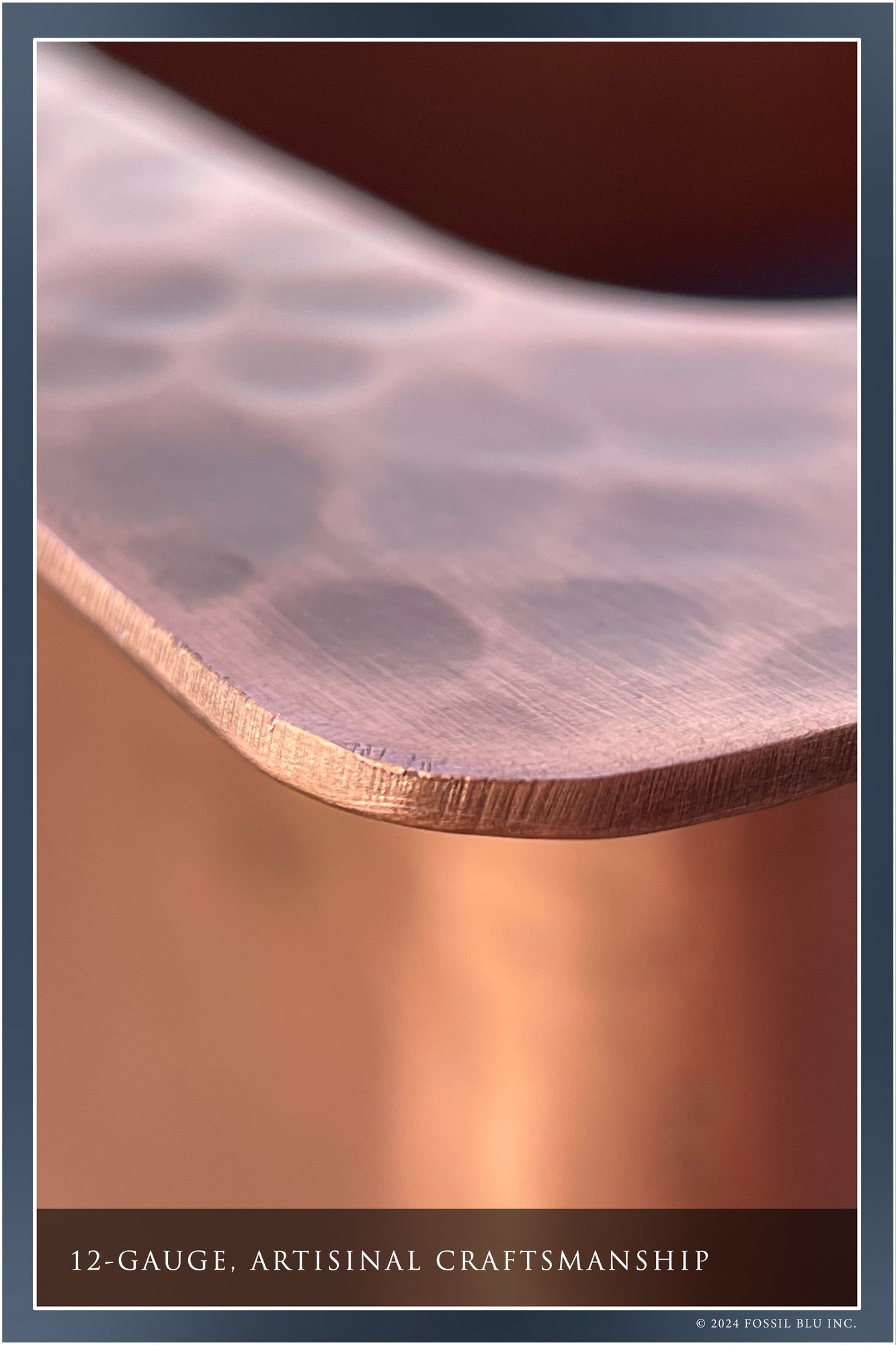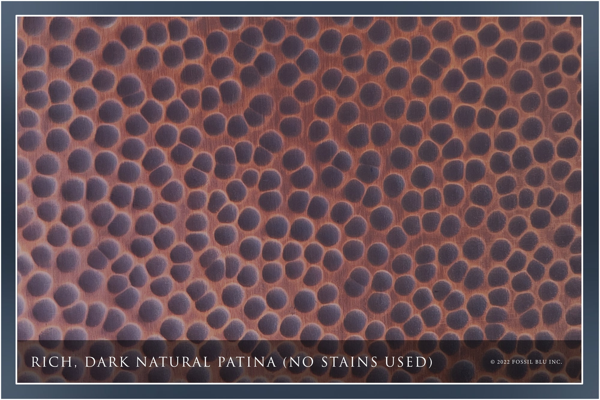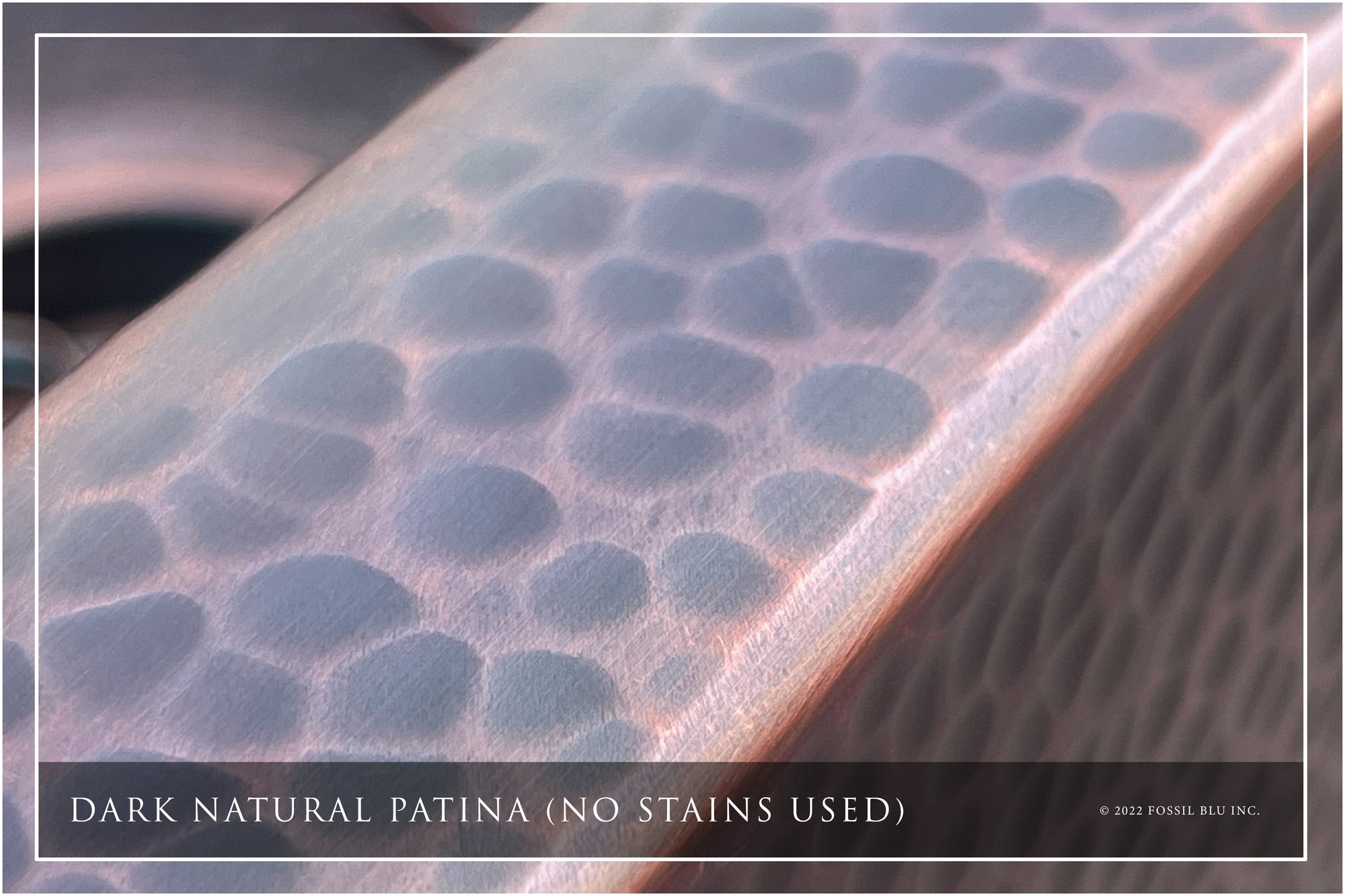 Compare this to the uniform hammer lines of inferior (mass-produced) sinks and you'll appreciate how your eyes get lost in the broader artistic nature of Fossil Blu copper sinks, not stuck travelling hammer lines.