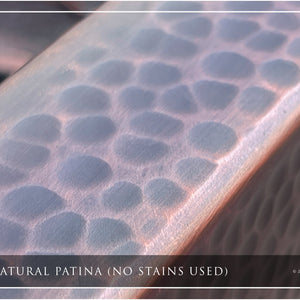 One example of this artistic expression is the randomized pattern of the hammer strike marks. Each impression represents a swing of the hammer and our artisans intentionally avoid neat "rows", with each strike building on unique formations. It's mesmerizing to watch.