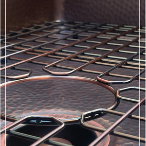 No need to hunt for matching accessories. Included with each sink is a copper-plated sink bottom grid, and a copper-plated disposal flange (copper-plated drain/strainer available on request)