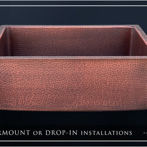 FSW1110 LUXURY 24-INCH HEAVY 12-GAUGE DARK PATINA COPPER UNDERMOUNT / DROP-IN SINK, INCLUDES ACCS