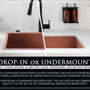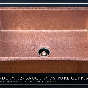FSW1116 LUXURY 33-INCH HEAVY 12-GAUGE MEDIUM PATINA COPPER UNDERMOUNT / DROP-IN SINK, INCLUDES ACCS