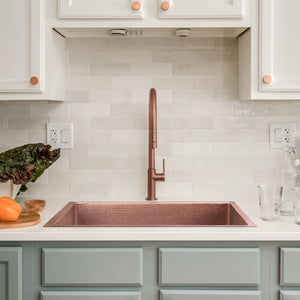Every Fossil Blu Copper Farmhouse Sink is made with extra-thick, 99.1% pure copper (zinc added for stength)