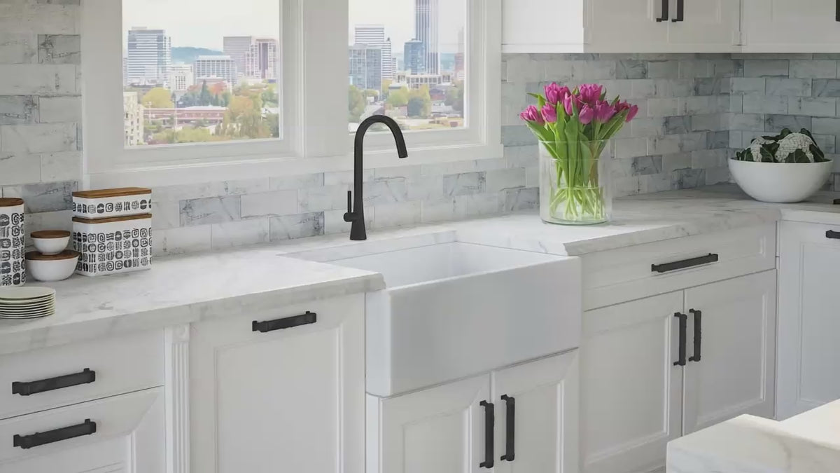 Fossil Blu fireclay sinks are designed with tighter corners and straighter sidewalls for a definitively up-to-date appearance. Combine this with luxurious accessories and a bold rectangular front apron, and your sink becomes the centerpiece of your remodeled kitchen.