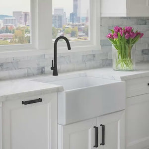 FSW1001MB LUXURY 30-INCH SOLID FIRECLAY FARMHOUSE SINK IN WHITE, MATTE BLACK ACCS, FLAT FRONT