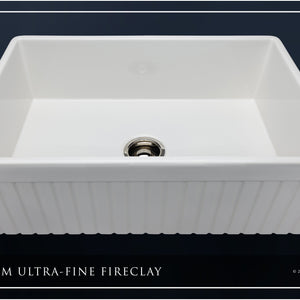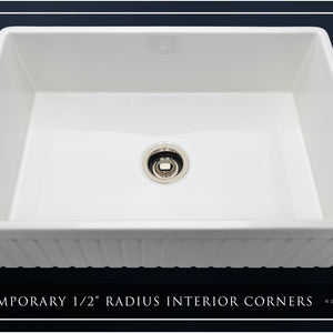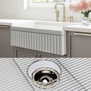 FSW1007PN LUXURY 33-INCH SOLID FIRECLAY FARMHOUSE SINK IN WHITE, POLISHED NICKEL ACCS, FLUTED FRONT