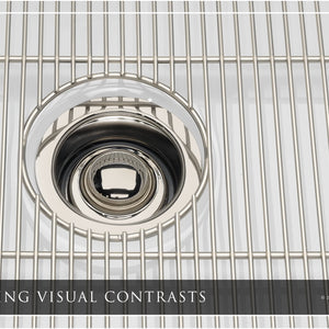 Included with this sink are three accessories: One (1) modern DESIGN-PRO sink grid, one (1) basket strainer drain, and one (1) garbage-disposal flange. For material strength, these accessories are made from 304 stainless steel, and finished in Polished Nickel. This is a genuine electro-plated finish, wherein a nickel alloy is permanently bonded to the stainless steel via electrolysis. Nickel is known for its warmer tone; where chrome more prominently reflects cool colors, nickel reflects warm colors. This is especially true if the colors of the room and/or ambient lighting is warm. You’ve never seen a more beautiful metal finish than polished nickel when the room is awash with the oranges and pinks of a sunset. It’s mirror-like polish glows a golden aura. All Fossil Blu sink accessories carry a limited one-year warranty.