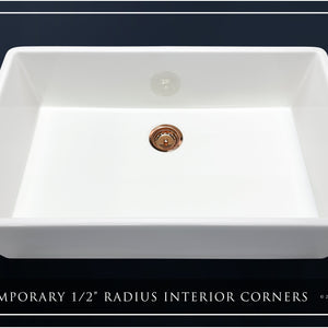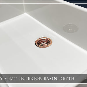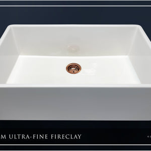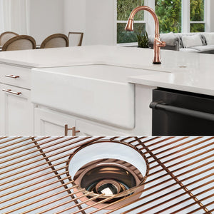 FSW1008RG LUXURY 36-INCH SOLID FIRECLAY FARMHOUSE SINK IN WHITE, POL. ROSE GOLD ACCS, FLAT FRONT