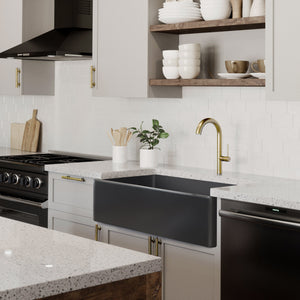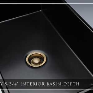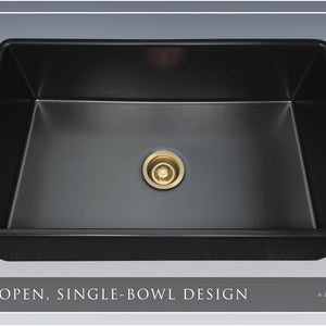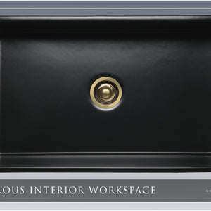 FSW1022BB LUXURY 33-INCH SOLID FIRECLAY FARMHOUSE SINK, MATTE BLACK, MATTE GOLD ACCS, FLAT FRONT