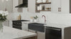 FSW1022RG LUX 33-INCH SOLID FIRECLAY FARMHOUSE SINK, MATTE BLACK, POL. ROSE GOLD ACCS, FLAT FRONT