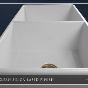 A sink is only as good as it's surface, and we take no shortcuts here. Our proprietary silica-based glaze is the best in the industry; It's easy to clean, very durable, and highly resistant to scuffs/scratches. All Fossil Blu fireclay sinks are offered in Glossy white. 33" single-bowl sinks (our most popular) are also available in Matte Black and Matte Gray.