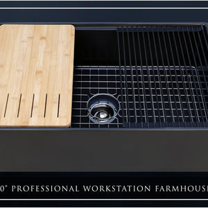 FSW1322PN LUXURY 33-INCH SOLID FIRECLAY WORKSTATION APRON-FRONT SINK IN BLACK, INCLUDES TOP AND POLISHED NICKEL BOTTOM ACCESSORIES, FLAT FRONT