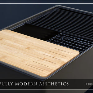 A kitchen can always use more utility, and Fossil Blu workstation sinks provide just that; additional workspace otherwise not afforded to the kitchen sink. Included are a bamboo cutting board and a drying rack, both easily added or removed depending on the moment's needs.