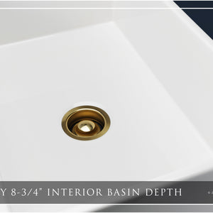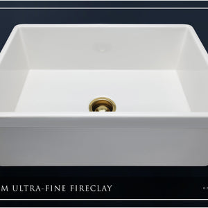 FSW1004BB LUXURY 30-INCH SOLID FIRECLAY FARMHOUSE SINK IN WHITE, MATTE GOLD ACCS, BELTED FRONT
