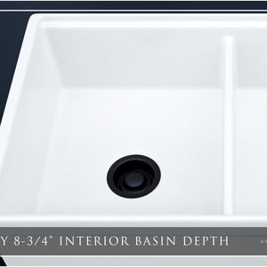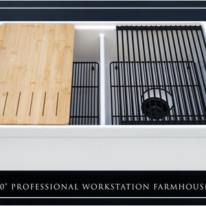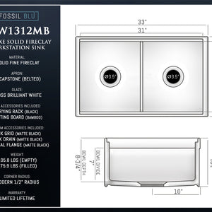 FSW1312MB LUXURY 33-INCH SOLID FIRECLAY WORKSTATION APRON-FRONT SINK IN WHITE, INCLUDES TOP AND MATTE BLACK BOTTOM ACCESSORIES, BELTED FRONT