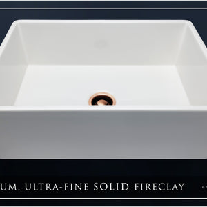 FSW1001AC LUXURY 30-INCH SOLID FIRECLAY FARMHOUSE SINK IN WHITE, ANTIQUE COPPER ACCS, FLAT FRONT