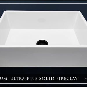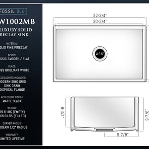 FSW1002MB LUXURY 33-INCH SOLID FIRECLAY FARMHOUSE SINK IN WHITE, MATTE BLACK ACCS, FLAT FRONT
