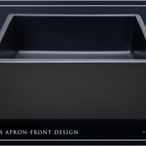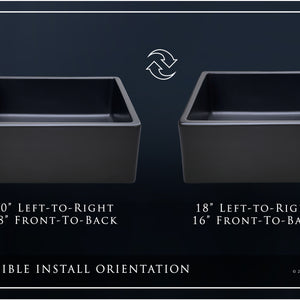 FSW8021 LUXURY 20 x 18 INCH REVERSIBLE SOLID FIRECLAY BATHROOM FARMHOUSE SINK IN MATTE BLACK, FLAT FRONT