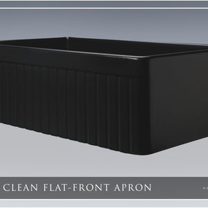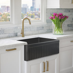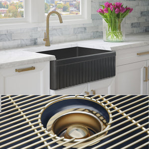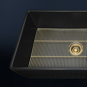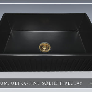 FSW1027BB LUXURY 33-INCH SOLID FIRECLAY FARMHOUSE SINK, MATTE BLACK, MATTE GOLD ACCS, FLUTED FRONT
