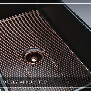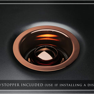 Included with this sink are three accessories: One (1) modern DESIGN-PRO sink grid, one (1) basket strainer drain, and one (1) garbage-disposal flange. For material strength, these accessories are made from 304 stainless steel, and finished in Polished Rose Gold. This is a genuine electro-plated finish, wherein a nickel/copper alloy (the rose gold hue) is permanently bonded to the stainless steel via electrolysis. Our Polished Rose gold finish has chameleon-like qualities to it. Under warmer lighting (such as sunsets), you will notice the rosy hues, while under cooler lighting (such as daytime), the gold hues are more pronounced. Due to this color tint, its mirror-like polish tends to darken reflections, providing an added element of contrast against the sink-bottom. All Fossil Blu sink accessories carry a limited one-year warranty.