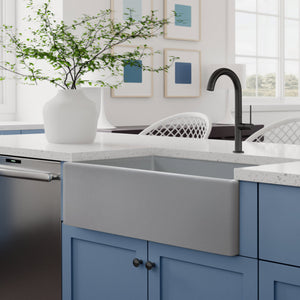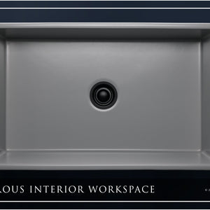 FSW1042MB LUXURY 33-INCH SOLID FIRECLAY FARMHOUSE SINK, MATTE GRAY, MATTE BLACK ACCS, FLAT FRONT