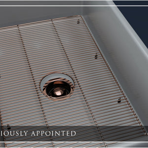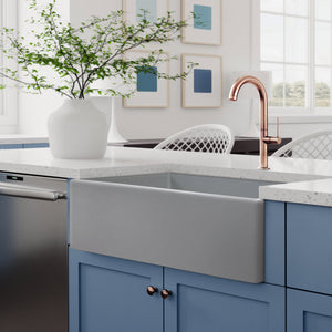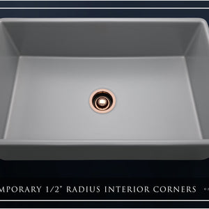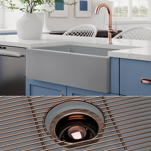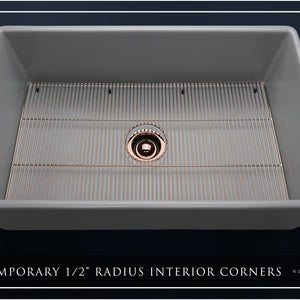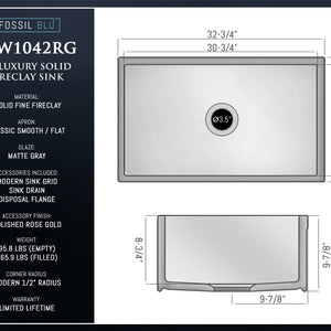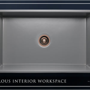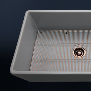 FSW1042RG LUXURY 33-INCH SOLID FIRECLAY FARMHOUSE SINK, MATTE GRAY, POL. ROSE GOLD ACCS, FLAT FRONT