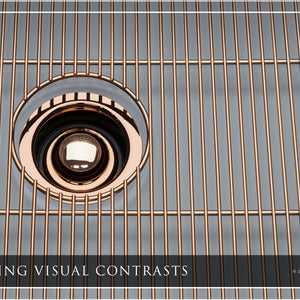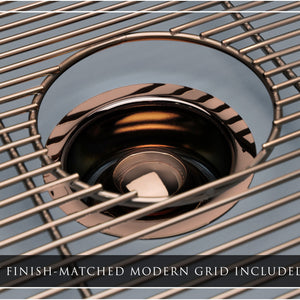 Included with this sink are three accessories: One (1) modern DESIGN-PRO sink grid, one (1) basket strainer drain, and one (1) garbage-disposal flange. For material strength, these accessories are made from 304 stainless steel, and finished in Polished Rose Gold. This is a genuine electro-plated finish, wherein a nickel/copper alloy (the rose gold hue) is permanently bonded to the stainless steel via electrolysis. Our Polished Rose gold finish has chameleon-like qualities to it. Under warmer lighting (such as sunsets), you will notice the rosy hues, while under cooler lighting (such as daytime), the gold hues are more pronounced. Due to this color tint, its mirror-like polish tends to darken reflections, providing an added element of contrast against the sink-bottom. All Fossil Blu sink accessories carry a limited one-year warranty.