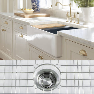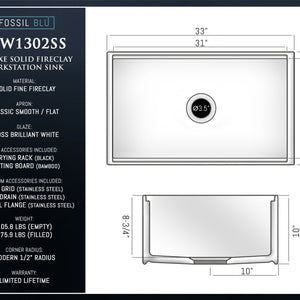 FSW1302SS LUXURY 33-INCH SOLID FIRECLAY WORKSTATION APRON-FRONT SINK IN WHITE, INCLUDES TOP AND STAINLESS STEEL BOTTOM ACCESSORIES, FLAT FRONT