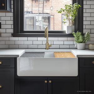 A kitchen can always use more utility, and Fossil Blu workstation sinks provide just that; additional workspace otherwise not afforded to the kitchen sink. Included are a bamboo cutting board and a drying rack, both easily added or removed depending on the moment's needs.