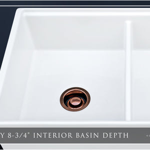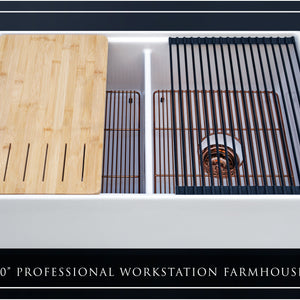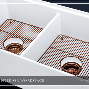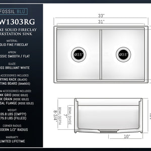 FSW1303RG LUXURY 33-INCH SOLID FIRECLAY WORKSTATION APRON-FRONT SINK IN WHITE, INCLUDES TOP AND POLISHED ROSE GOLD BOTTOM ACCESSORIES, FLAT FRONT
